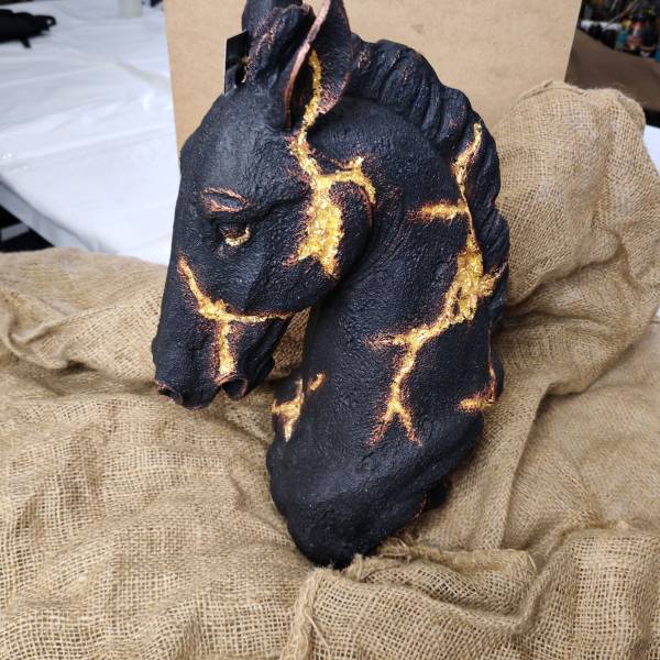 Özel tekniklerle boyanan mükemmel bir at başı çalışması.