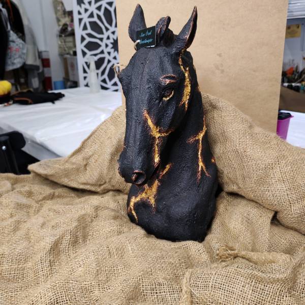 Özel tekniklerle boyanan mükemmel bir at başı çalışması.