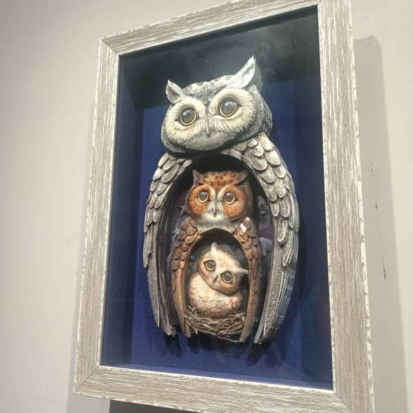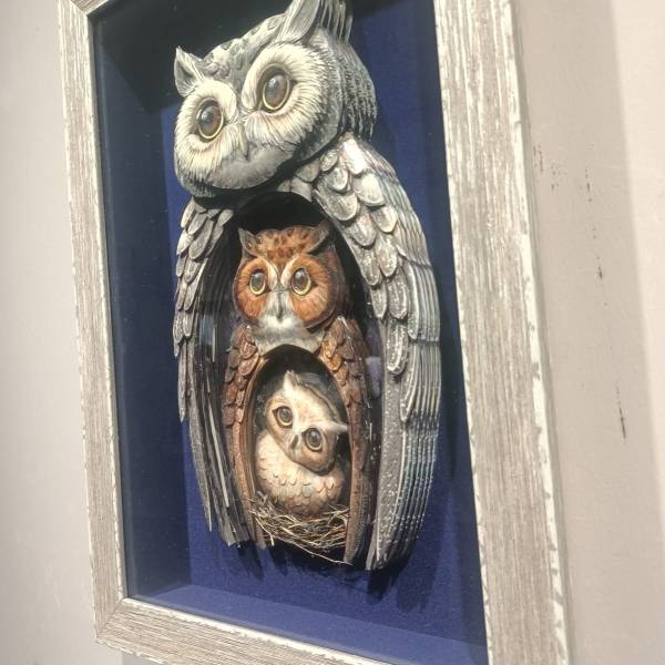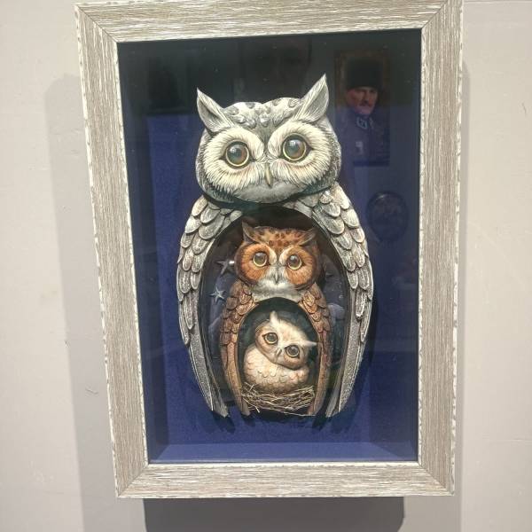 El yapımı, tamamen özgün baykuş temalı kâğıt rölyef çalışmam satıştadır. Ölçüleri 35x55 cm